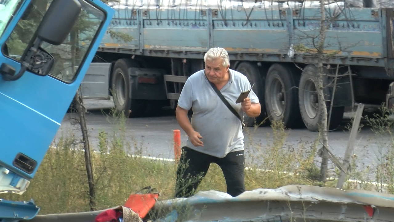 O sırada aynı istikametten gelen Abdullah Geyik yönetimindeki cam yüklü kamyonet, yan yatan TIR'ın dorsesine çarptı. Çarpmanın etkisiyle kamyonet şoförü Abdullah Geyik ile yolcu koltuğunda bulunan Bayram Çiftçi araç içerisinde sıkışarak yaralandı.