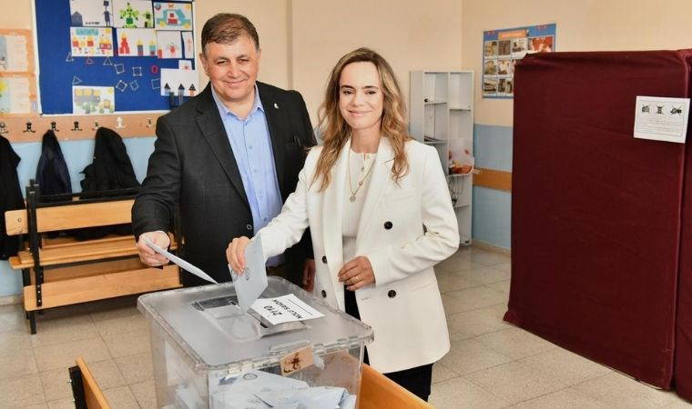 Tugay, saat 12.30’da eşi Öznur Tugay’la Karşıyaka Şehit Polis Samet Kırcalı Ortaokulu’nda kurulan 2110 No’lu sandığa giderek oyunu attı.
