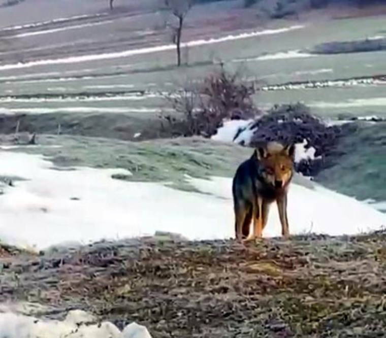 Munduşlar köyü Salmanlar Mahallesi yolunda otomobili ile ilerleyen İsmail Ceyhan, yol kenarında kurt gördü.