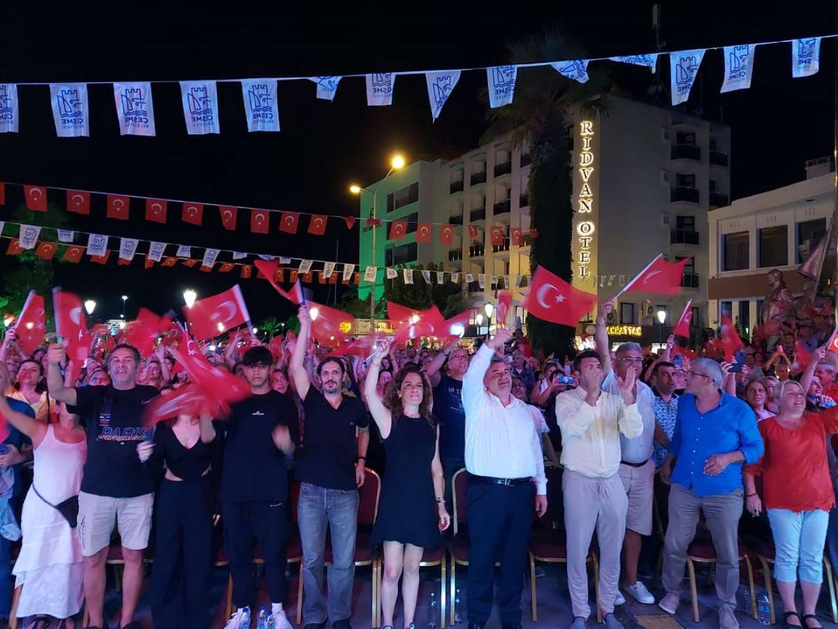 Çeşme Belediye Başkanı Ekrem Oran'ın eşi Nuriş Oran’la yaptığı dans performansı yurttaşlardan büyük alkış aldı. Şarkıcı Ege 10. Yıl Marşı ve söz ve bestesini kendisinin yaptığı 100. Yıl Marşı'nı ilk kez de Çeşmelilere söylerken yurttaşlara kendilerine dağıtılan Türk bayraklarını salladı. ,