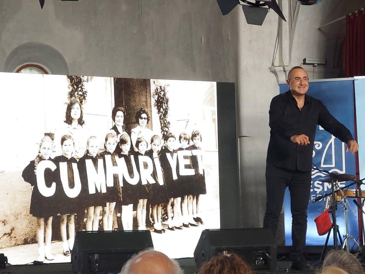 Aya Haralambos Kültür Merkezi’nde sahne alan Sunay Akın sevenleriyle buluştu. Akın’ı sahneye Çeşme Belediye Başkanı Ekrem Oran davet etti. Sunay Akın sahende cumhuriyet sayesinde elde edilen kazanımları anlatarak cumhuriyetin 100. yılının önemine dikkat çeken bir söyleşi gerçekleştirdi. Başkan Oran etkinlik sonnda Sunay Akın'a çiçek sunarak yeni kültür sanat merkezinin açılışına davet etti.
