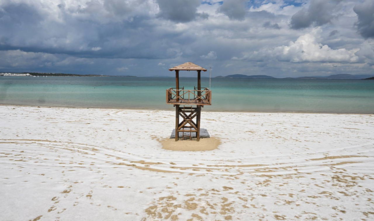 Çeşme'de beyaz bir manzaraya alışık olmayan ilçe sakinleri ise çocuklarıyla plajda yürüyüş yaptı, dolu tanelerinden kartopu yapmaya çalıştı. Öte yandan bazı vatandaşların doluyla kaplanan Ilıca Plajı'ndan denize girdikleri görüldü.
