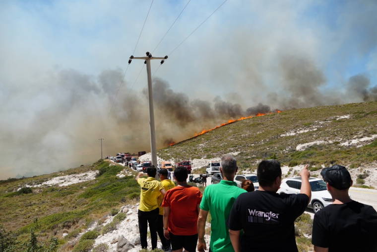 Rüzgarın da etkisiyle hızla yayılan yangının yaklaştığı alanda bazı evlerdeki kişiler, tedbir amaçlı tahliye edildi.