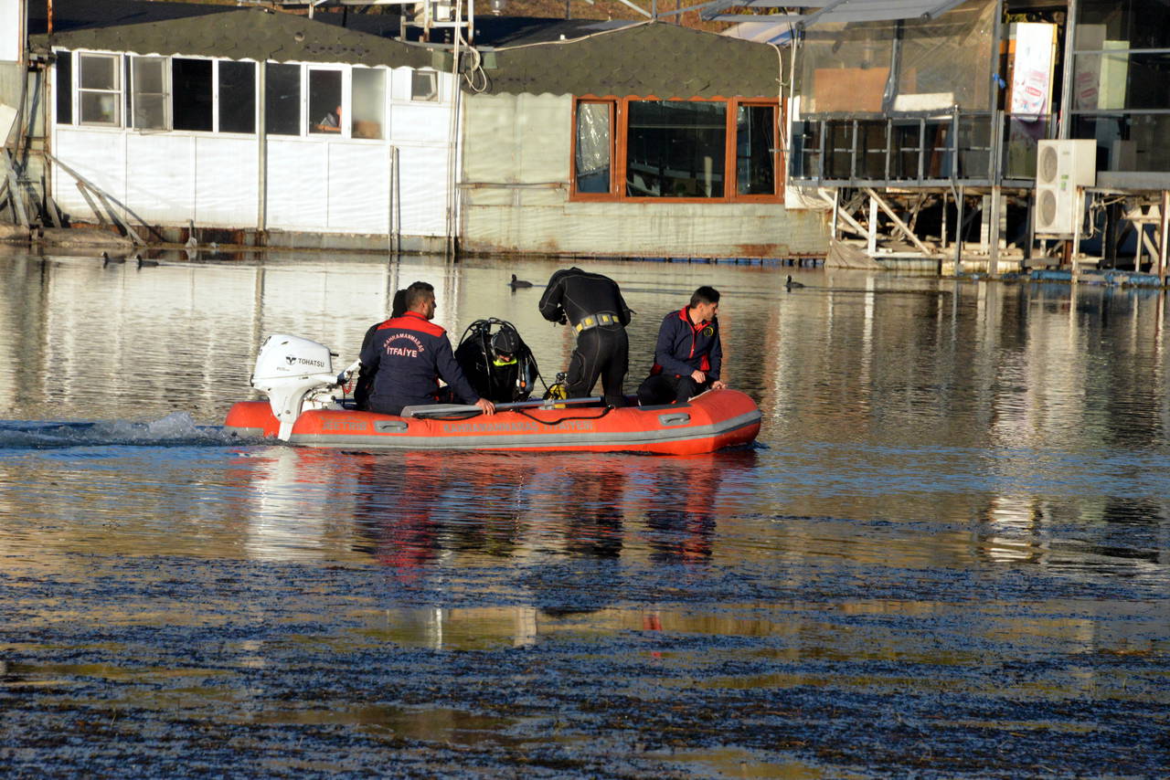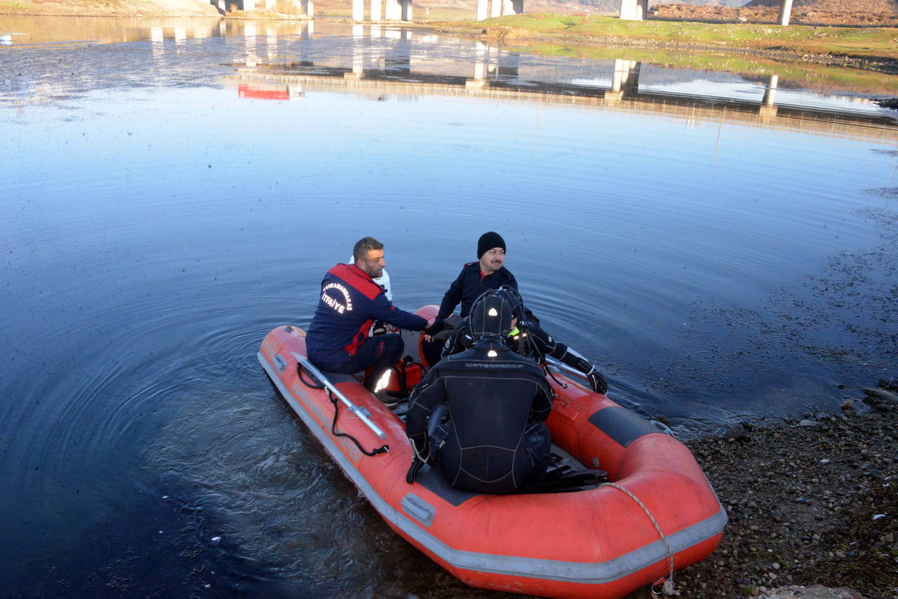 İtfaiye dalgıçları su altından detaylı, AFAD ekipleri ise botla yüzeyden arama yapıyor.