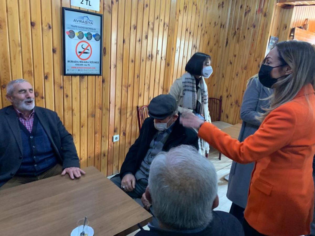 Beş kişilik bir aile babası ise sorunlarını, “Zamlardan çok rahatsızız. Ben işsizim. Biz de bekliyoruz cumhurbaşkanı buralara gelsin, görsün bunları. 30 milyona ben sadece üç tane domates alabiliyorum. Ne yapayım ben üç tane domatesi?” sözleriyle anlattı. CHP heyeti daha sonra meydandaki dükkânları gezmeye başladı. Bir çay ocağında oturan 70 yaşındaki emekli yurttaş, haber bültenlerinde gördüğü siyasi tartışmalardan bıktığını anlatarak, “Bana ne bundan. Sen benim sorunuma bak” tepkisini gösterdi. AKP üyesi olduğunu söyleyen bir giyim mağazası sahibi “Artık hiçbir şeye inanmıyorum. Şu zor dönemde kimse yanımızda olmadı. Arkadaşlarımızın faturayı ödeyemediği için elektriği kesildi. Pandemide dükkânı kapattık, yine vergi ödedik. Kimse de gelip bize ‘Şu size can suyu olsun’ demedi. Sadece seçim zamanı geliyor herkes. Siz gelince nasıl düzelecek?” dedi. Çözüm için siyasetçilere seslenen esnaf, “Hepsi bir araya gelsin” dedi. Aylin Nazlıaka da Ahlatlıbel Zirvesi’ni anımsatarak, “Bir araya geldiler, sorunlarınızı bu masa çözecek” yanıtını verdi.