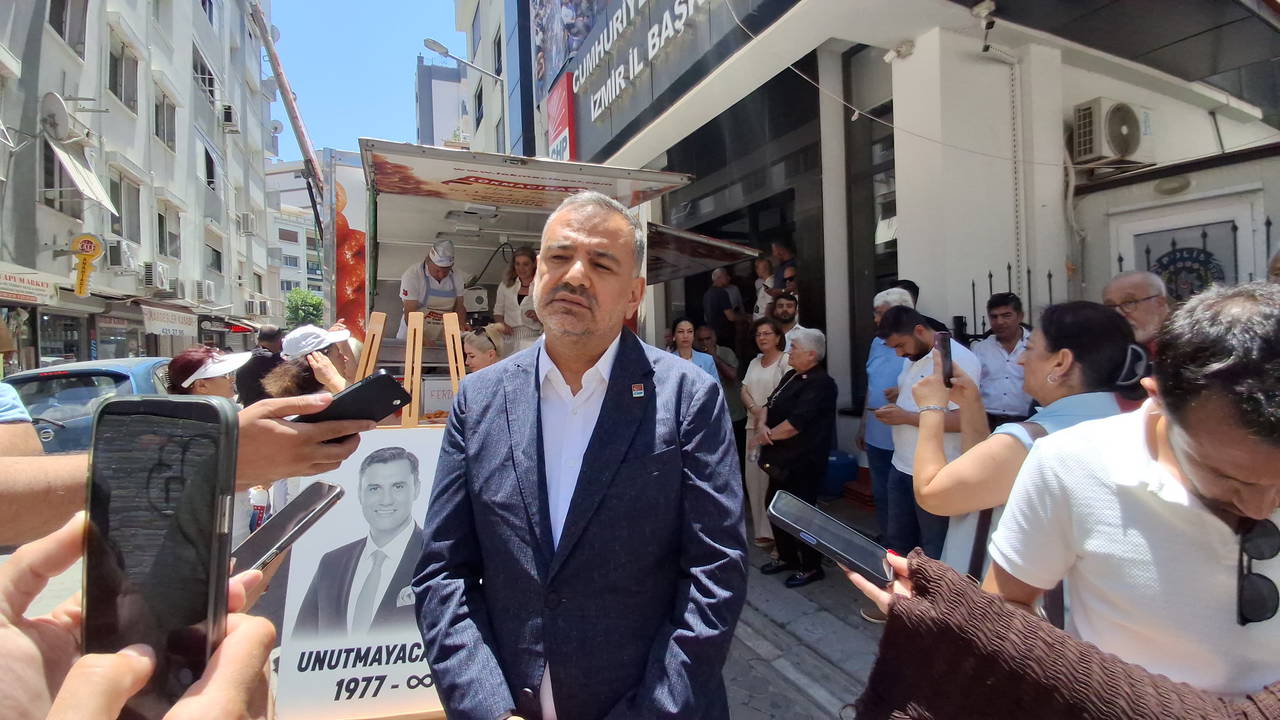 CHP İzmir İl Başkanlığı, merhum Manisa Büyükşehir Belediye Başkanı Ferdi Zeyrek'in ölümünün 7'nci gününde lokma döktürdü. Dökülen lokmalar İl Başkanlığı önünde Zeyrek hayrına yurttaşlara ikram edilirken, CHP İzmir İl Başkanı Şenol Aslanoğlu, basın mensuplarına konuştu.