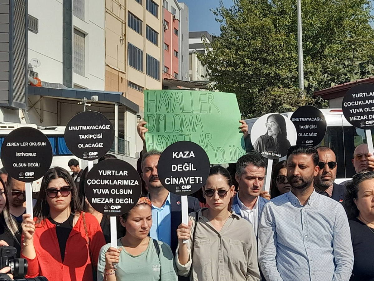 CHP İzmir İl Başkanlığı, Aydın’ın Efeler ilçesindeki Kredi ve Yurtlar Kurumu’na (KYK) bağlı kız öğrenci yurdunda üniversite öğrencisi Zeren Ertaş’ın ölümü ve 15 öğrencinin yaralanmasıyla sonuçlanan asansör kazasıyla ilgili Buca Tınaztepe KYK Kız Öğrenci Yurdu önünde basın açıklaması gerçekleştirdi.