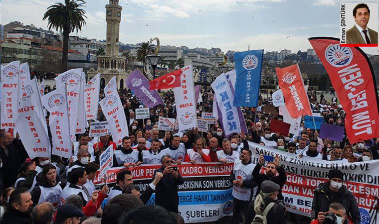 İmzalanan son toplu sözleşmeden dolayı Sayıştay tarafından İzmir Büyükşehir Belediyesi personeline zimmet çıkartılması ve sözleşmeli memurlara kadro verilmemesini protesto etmek amacıyla Konak Meydanı’na inen belediye emekçilerine Cumhuriyet Halk Partisi’nden tam kadro destek geldi. CHP Yerel Yönetimlerden Sorumlu Genel Başkan Yardımcısı Seyit Torun, iktidara yüklendiği açıklamasında “Bizi belli bedellere mahkum etmiş olabilirler ama vatandaş onlara sandıkta öyle bir bedel ödettirecek feleklerini şaşıracaklar” derken, CHP Genel Başkan Yardımcısı Veli Ağbaba ise “Devlet zimmet çıkararak haraç alıyor. Çetelerin dostu olan bu iktidarı hep beraber göndereceğiz” diye konuştu.