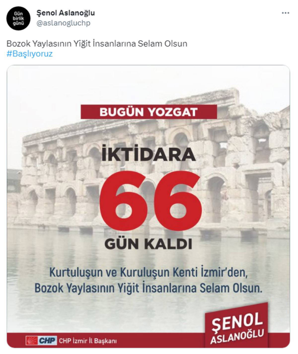 Aslanoğlu bir önceki gün ise Zonguldak'a yer vermiş, "Kurtuluşun şehri İzmir’den selam olsun…" ifadelerini kullanmıştı.