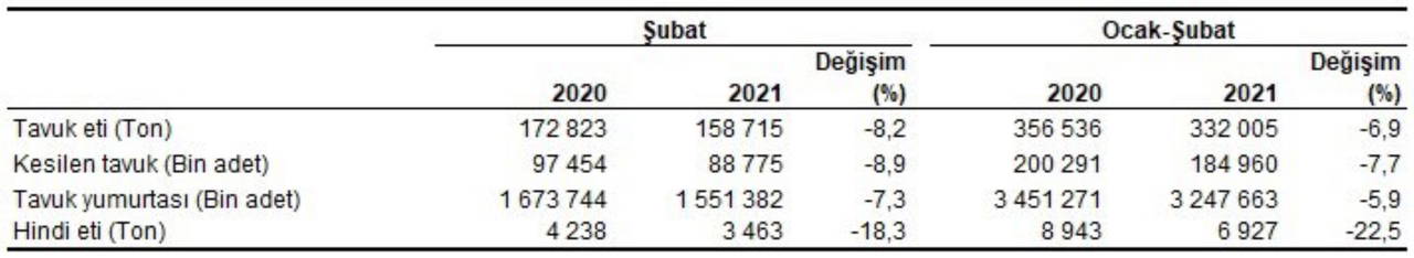 Kümes hayvancılığında da durumumuz vahim. Ocak-Şubat döneminde bir önceki yılın aynı dönemine göre tavuk yumurtası üretimi %5.9, tavuk eti %6.9, kesilen tavuk sayısı %7.7, hindi eti üretimi de %22.5 azaldı. Eskiden uygun fiyatıyla vatandaşın protein kaynağı olan tavuk ve yumurta, şimdi lüks hale geldi. Çünkü üretici işi bırakmak zorunda kalıyor. Her gün yurdun dört bir tarafındaki kümesler tek tek kapanıyor.
