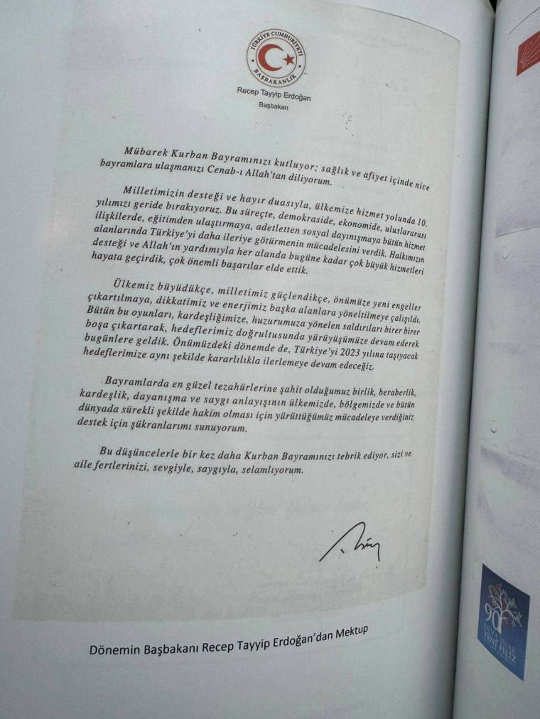 Cumhurbaşkanı Recep Tayyip Erdoğan, başbakanlık yaptığı dönemde Ahmet Özer’e kurban bayramı tebrik mektubu göndermiştir.