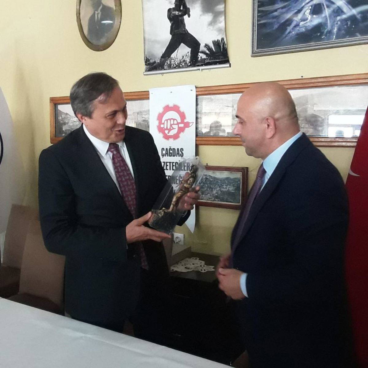 Zonguldaklıların ilgi gösterdiği basın panelinin sonunda gazetemiz Genel Yayın Yönetmeni Küçükkaya, CHP Genel Başkan Yardımcısı Torun’a madenci heykelini sundu.