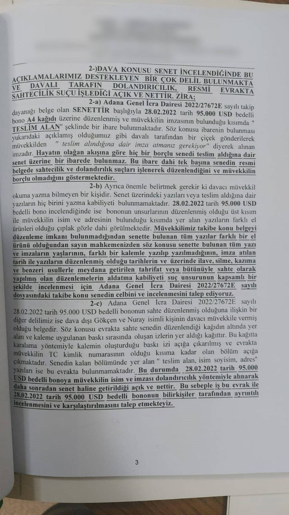 Nuray F.’nin anlattıklarından da şüphelenen Şükran Candan, 25 Nisan’da kızı ile birlikte e-devletine baktı. Orada kendi adına açılan icra dosyasını gören Candan, durumu çocuklarına haber verdi. Hemen avukata giden Candan ailesi, Halil B.’nin 95 bin dolarlık senet için alacağı karşılığında Şükran Candan’ın 5 ev, 1 otomobil ve 1 motosikletine haciz koydurduğunu öğrendi.