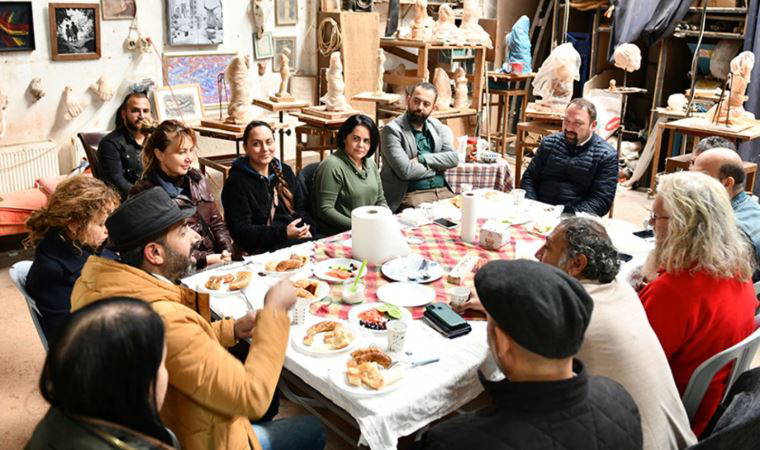 Çiğli Belediye Başkanı Utku Gümrükçü, Ekin Erman Atölyesi’ni ziyaret ederek heykeltıraş Ekin Erman, seramik sanatçıları, mimar ve ressamlardan oluşan sanat üreticileri ile kahvaltı yaptı. Atölyenin ihtiyaçları ve devam eden çalışmaları hakkında bilgi alan Başkan Gümrükçü, Kaklıç Sanat Köyü Projesi'nin 2022 yılı hedefleriyle ilgili değerlendirme yaptı.