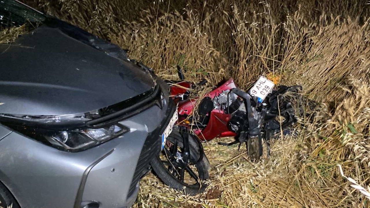 Tekirdağ'ın Çorlu ilçesi Sarılar yolu üzerinde iddiaya göre, Çorlu istikametine seyreden M.İ. idaresindeki otomobil, motosiklete arkadan çarparak tarlaya savruldu.