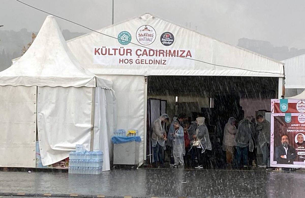 ÇADIRLARA GİREREK YAĞMURDAN KORUNMAYA ÇALIŞTILAR