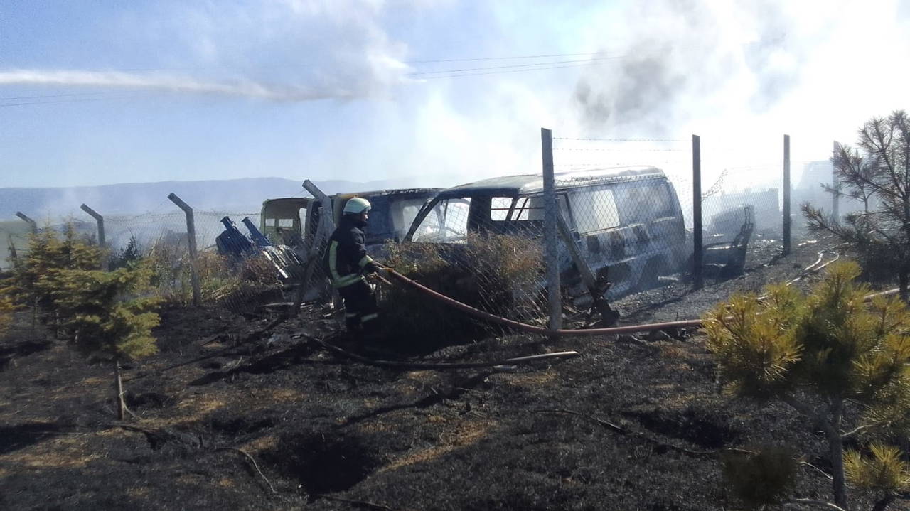 Yangın, 1 saatlik çalışmayla kontrol altına alındı. Yangında işyerinin bahçesindeki yaklaşık 200 hurda araç yandı.