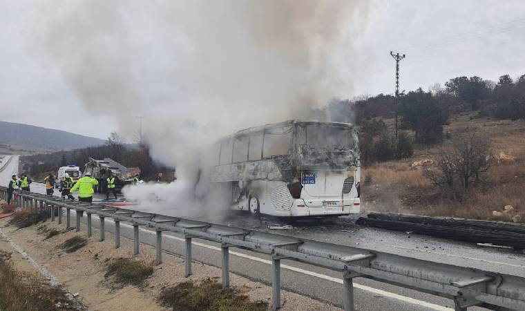 Kaza nedeniyle ulaşıma kapanan kara yolu, otobüsteki yangının söndürülmesinin ardından tekrar ulaşıma açıldı.