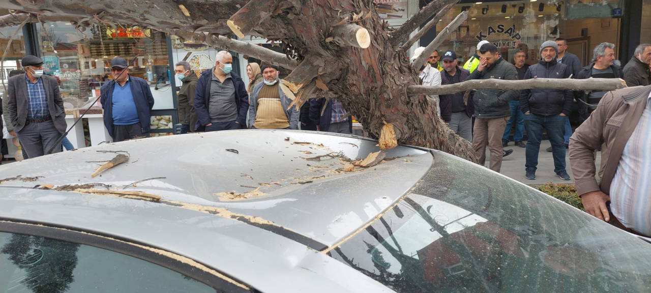 İhbarla bölgeye itfaiye ve polis ekipleri gönderildi. İtfaiye ekipleri ağacı kaldırırken, otomobilde hasar oluştu.