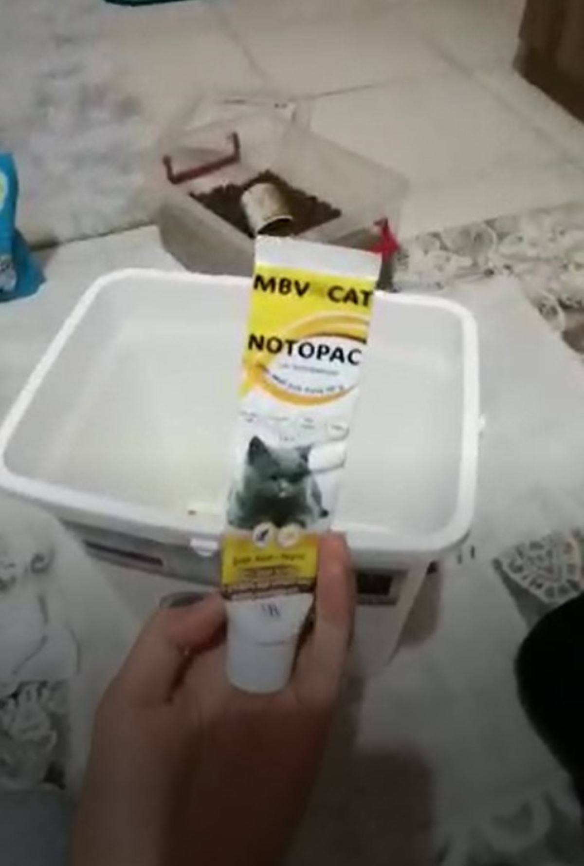 Onun için de ayrı çanta hazırladım’ dedi. Videoda da kardeşim çantaya kedimiz