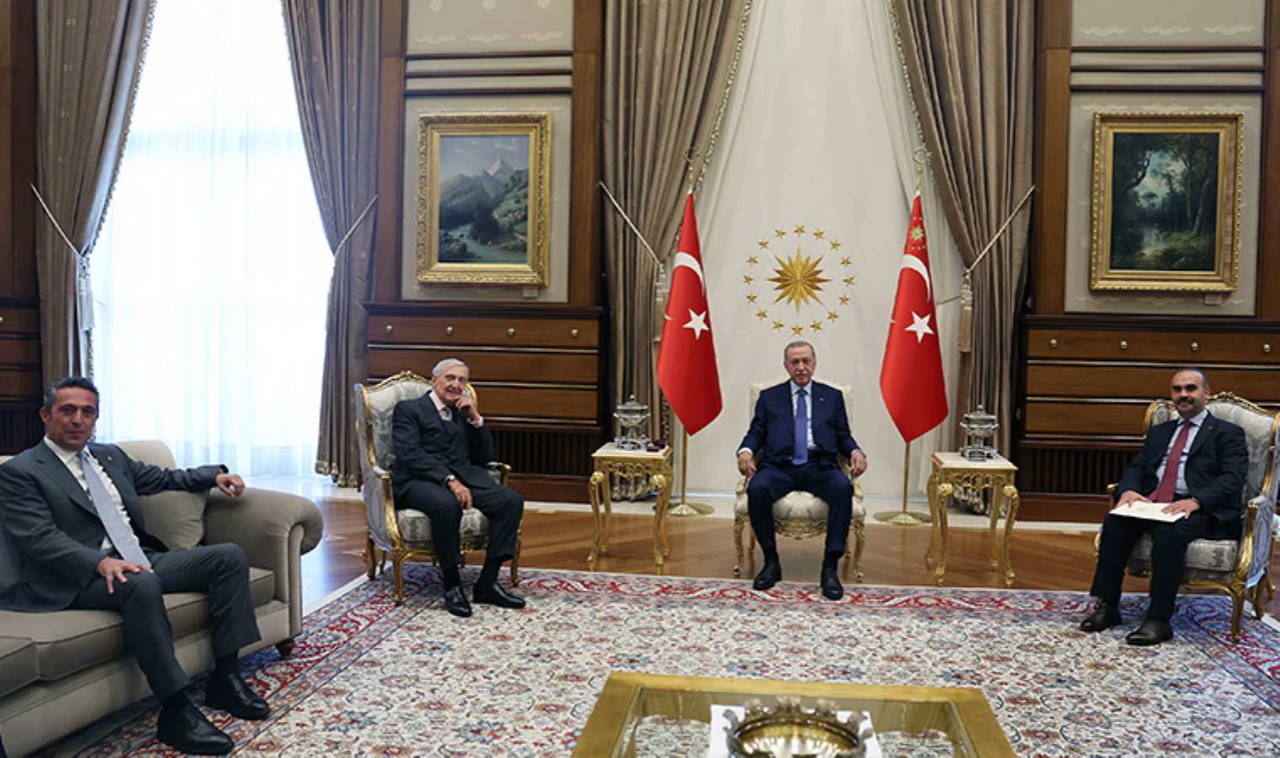Cumhurbaşkanı Recep Tayyip Erdoğan, Sanayi ve Teknoloji Bakanı Mehmet Fatih Kacır ile iş insanları Rahmi Koç ve Ali Koç'u kabul etti.