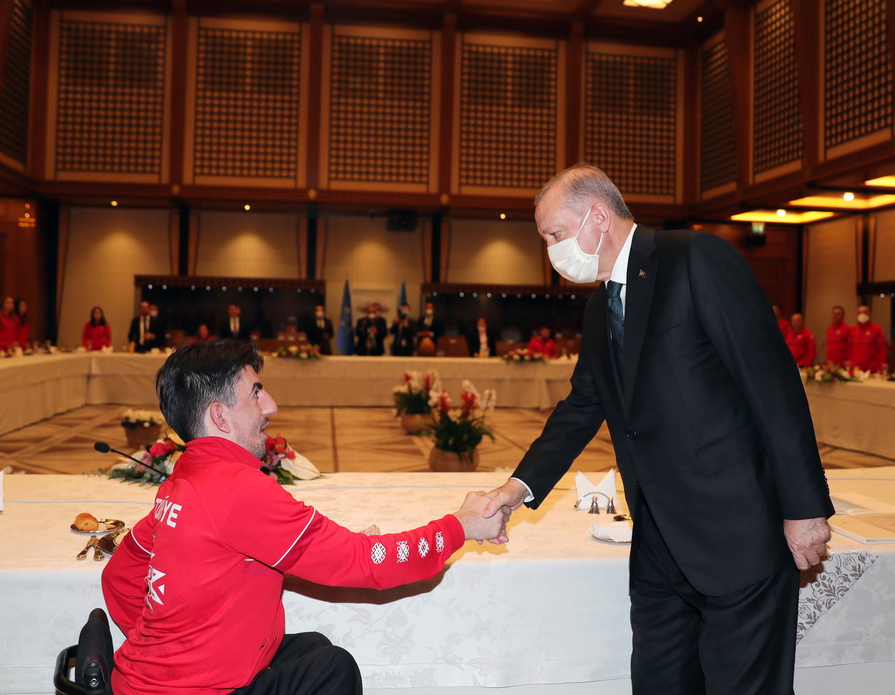 Erdoğan, 2020 Tokyo Paralimpik Olimpiyat oyunlarında madalya kazanan milli sporcuları kabul etti.