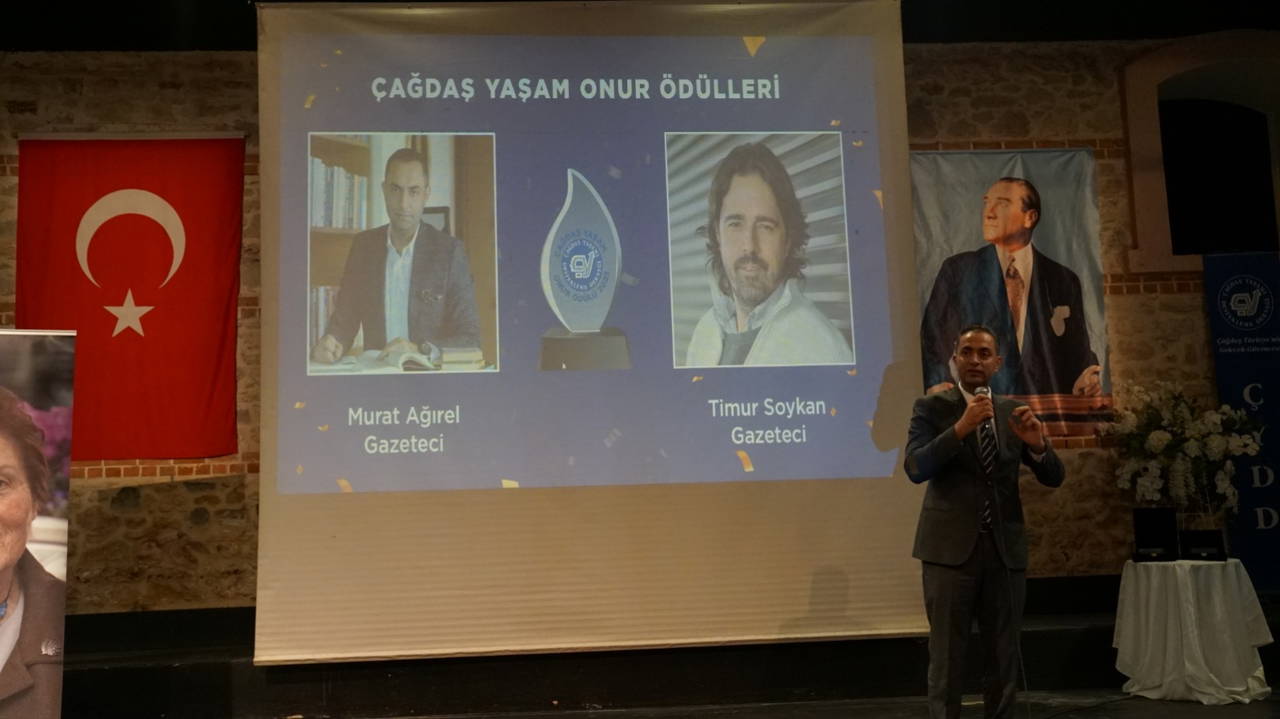 “Geçtiğimiz günlerde hepimizi derinden sarsan ve vicdanımızı sızlatan bir tarikat vakfı kurucusunun 6 yaşındaki kızını “evlilik” kılıfı altında sistematik şekilde istismara maruz bıraktığı haberini kamuoyuna duyuran ve sonuna kadar takip eden gazeteci Timur Soykan ile yine tarikat ve cemaatlerin karanlık yüzlerini gösteren dosyaları kamuoyuyla paylaşan ve bu alanda fikri takip yapan gazeteci Murat Ağırel, çağdaşlaşma ve aydınlanma yolunda gayretleri, cesaretleri, ilkeli ve kararlı duruşlarıyla öne çıkarak Çağdaş Yaşam Onur Ödülü’ne layık görülmüştür.”
