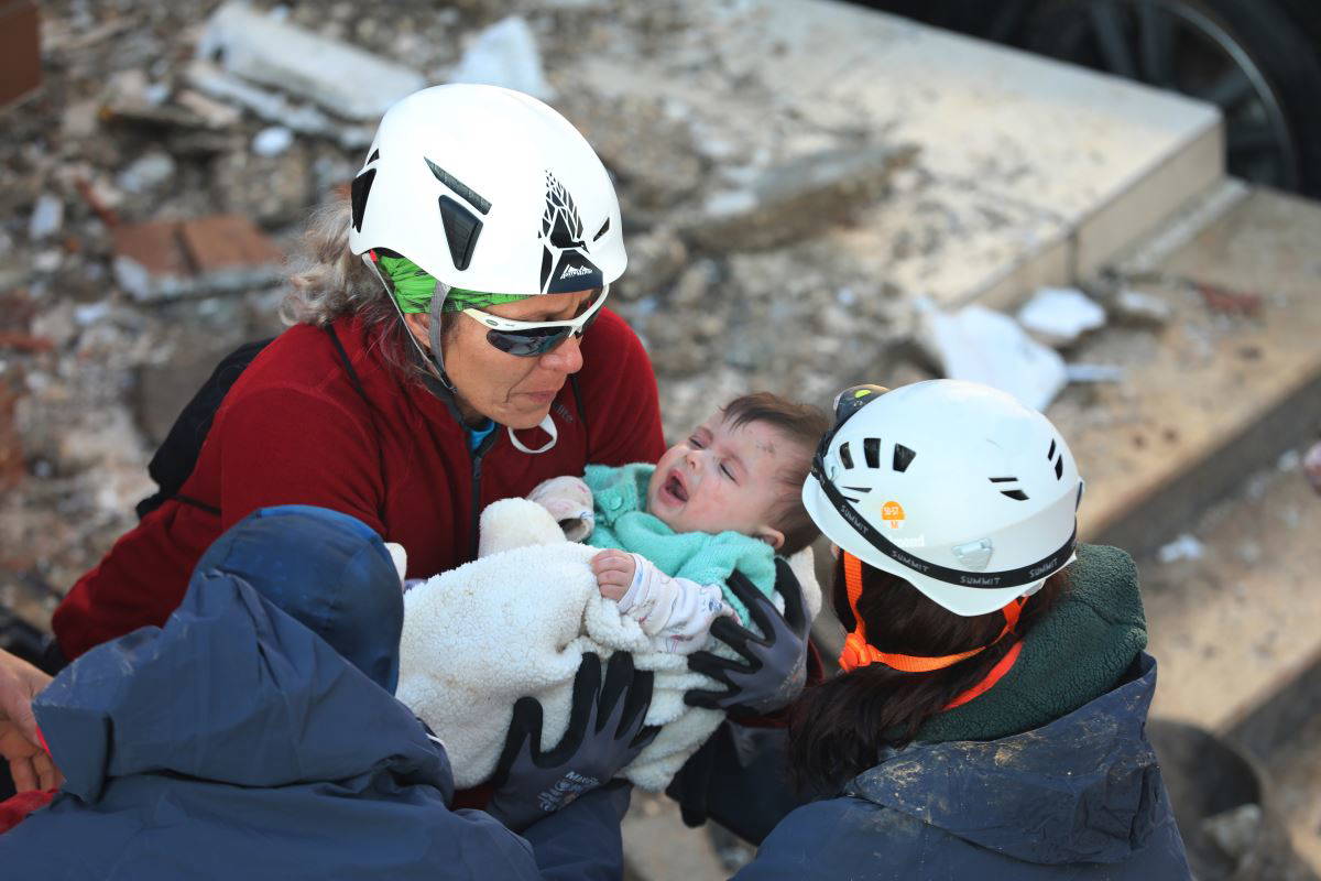 Kahramanmaraş’taki enkazlarda arama kurtarma çalışmalarını izlerken, gözyaşlarımızı tutamadığımız pek çok an var. Bunlardan en acısını kentte depremin en fazla etkilediği bölgelerden olan Trabzon Caddesi’nde yaşadık. Bir baba, küçük kızının battaniyeye sarılı cansız bedenini enkazdan çıktığı sırada kucakladı. Tarifi olanaksız hisler yaşadığımız bu anlar objektifimize yansıdı...