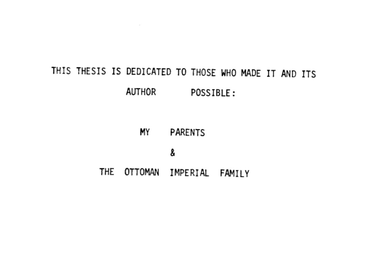 Celal Şengör’ün 1982 senesinde yazdığı doktora tezinde, söz konusu tezin ailesine ve Osmanlı Hanedanı mensuplarına ithaf ettiği görülüyor.