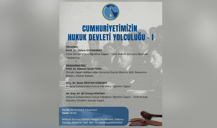 Türk Hukuk Kurumu, Cumhuriyetin 100. yılına uzanan hukuk devleti serüvenini mercek altına alıyor. “Cumhuriyetimizin Hukuk Devleti Yolculuğu - I” başlıklı konferans Ankara'da yapıldı.