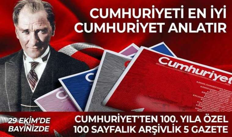 Türkiye Cumhuriyeti 100. yaşına ulaştı. Cumhuriyetin 100. yıldönümü kutlu olsun. Cumhuriyet gazetesi, Büyük Atatürk'ün emaneti Cumhuriyetimizin 100. yılını arşivlik bir sayıyla karşılıyor.