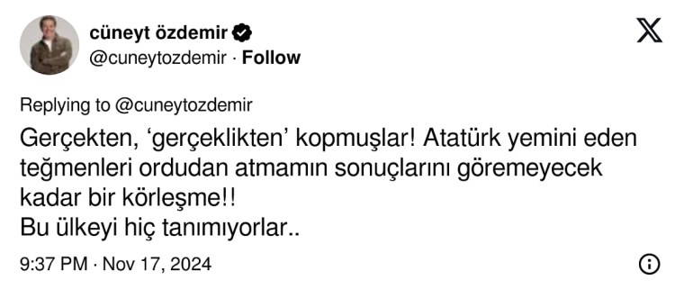 Teğmen Eroğlu için gazeteci Cüneyt Özdemir'den destek içeren bir tweet ve bir de davet geldi.