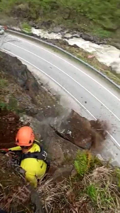 Karayolları tarafından başlatılan ıslah çalışmasıyla endüstriyel dağcılar, tırmandıkları yamaçlarda, riskli ve askıda kalan kayaları kontrollü olarak düşürüyor. Dağcıların kaya düşürme anları kameraya yansırken, riskli yamaçlar da enerji sönümlü çelik örtüleme bariyerleriyle kaplanıyor.