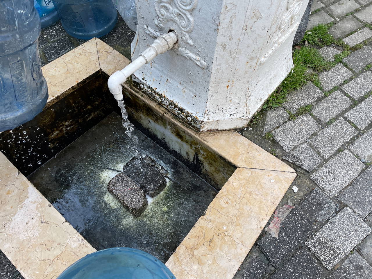 Sarıyer Maden Mahallesi'ndeki çeşmeye gün boyu çok sayıda kişi geliyor. Gelenler, yanlarında getirdikleri damacanaları, pet şişeleri, çeşmeden doldurup, yollarına devam ediyor.