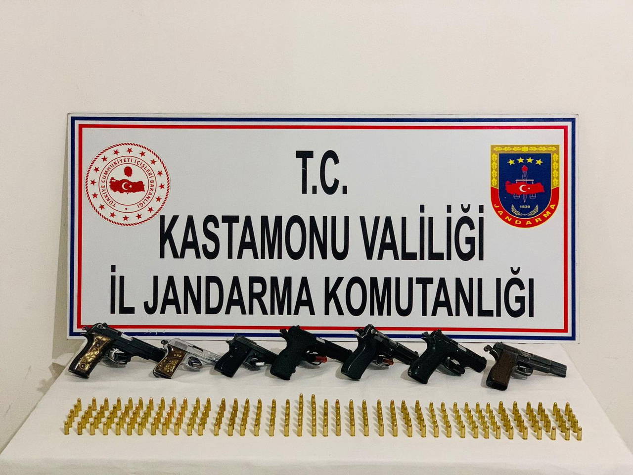 Şüphelilerin üzerlerinde ve araçlarında yapılan aramada 2 adet ruhsatsız tabanca, 4 adet bulundurma ruhsatlı tabanca, 1 adet taşıma ruhsatlı tabanca ile bu tabancalara ait 232 adet tabanca fişeği ele geçirildi.