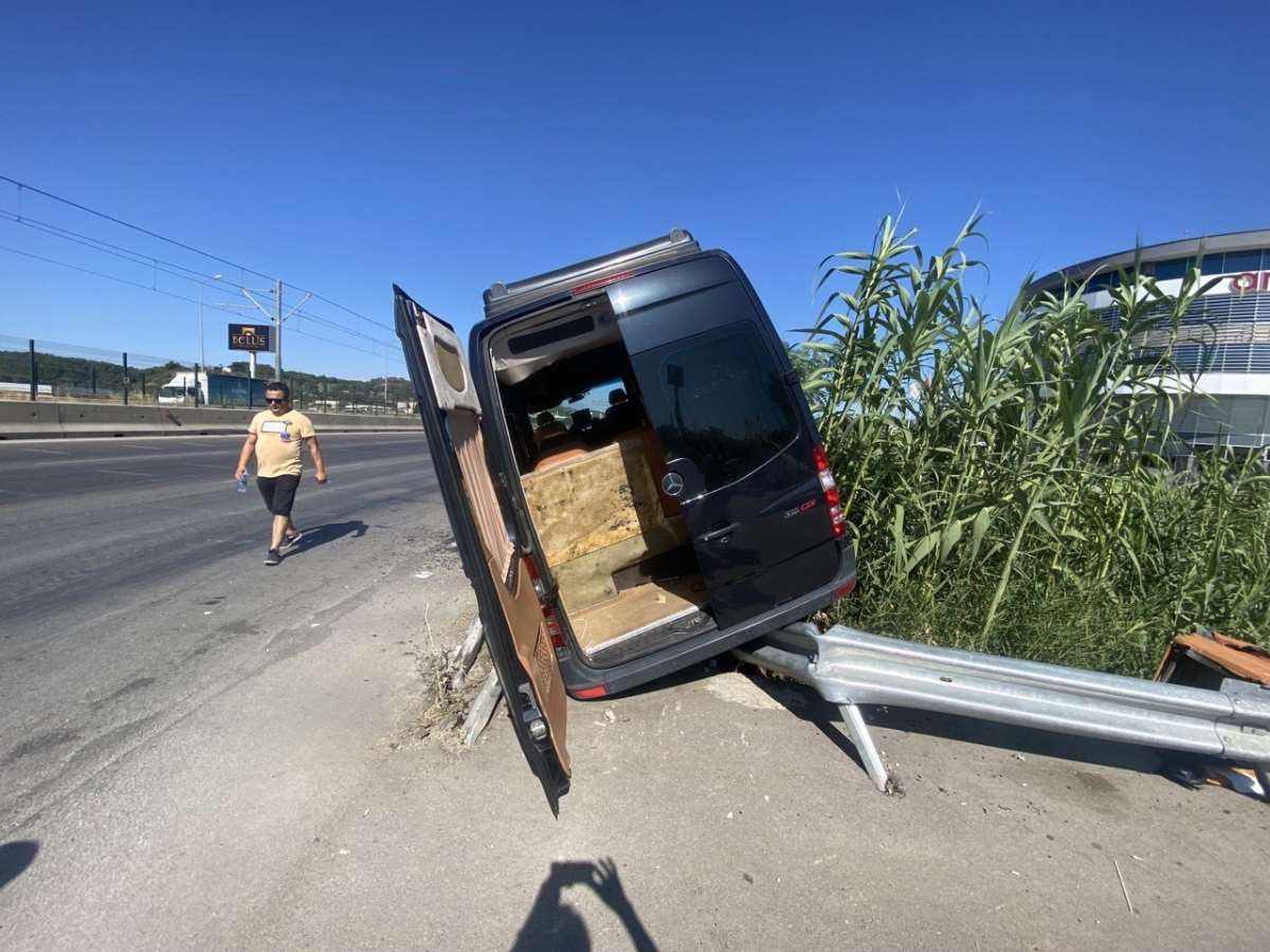 Çarpmanın etkisiyle sağ tarafta buluna bariyer aracın içinden geçti.