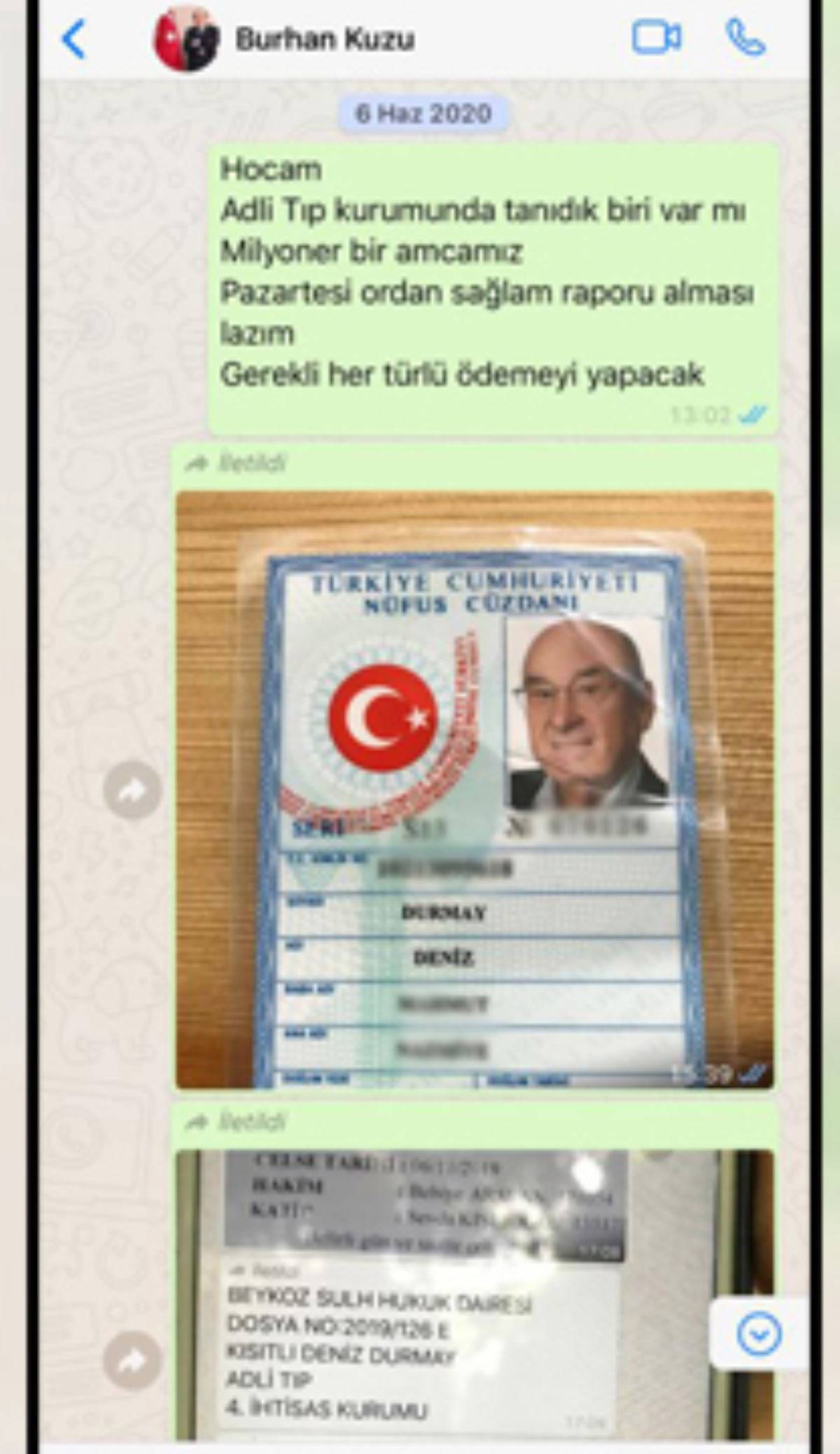 “Hocam Adli Tıp’ta tanıdık birileri var mı? Milyoner bir amcamızın pazartesi ordan sağlam raporu alması lazım. Gerekli her tür ödemeyi yapacak.”
