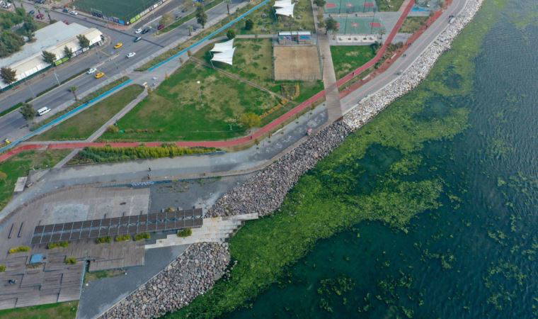 Temizliğin ardından körfezde alg çoğalması yeniden ortaya çıktı. Deniz yosunu, Bostanlı semtinde kıyıya yakın noktaları yeşile bürüdü.
