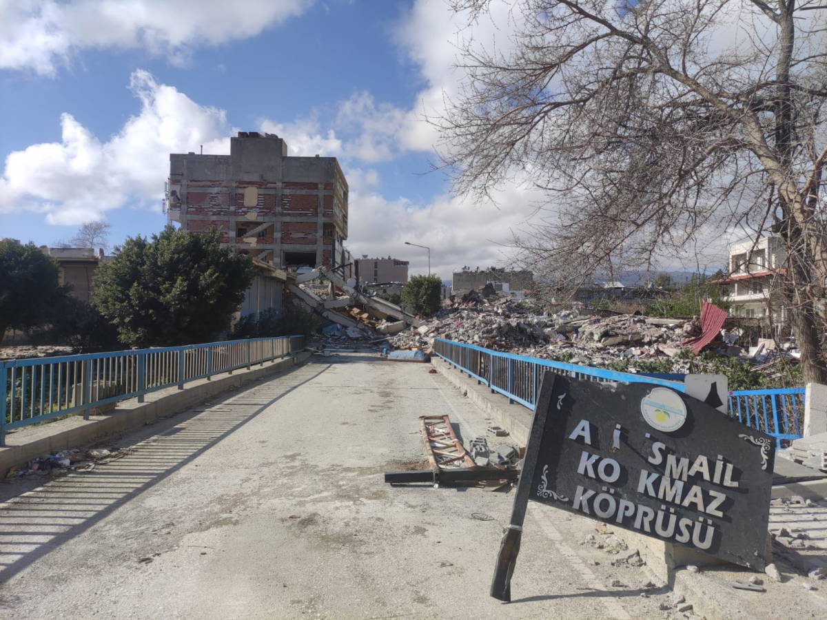 Çadır alanından ayrılırken caddenin ilerisinde bir tabela görünüyor. Burası Ali İsmail Korkmaz Köprüsü. Etrafında yıkılan binaların enkazı hala kaldırılmamış. Yıkılmayan köprünün başındaki Ali İsmail Korkmaz tabelası hâlâ duruyor.