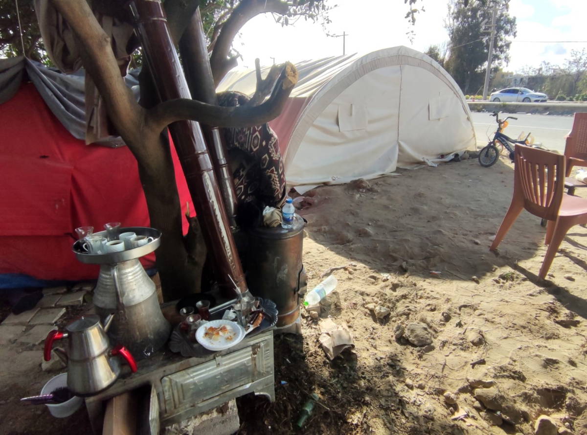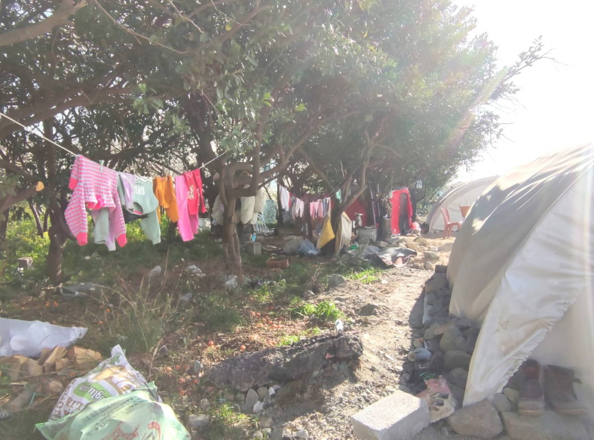 Deprem günü Samandağ'ın Sutaşı köyünden bu alana gelerek 15 gün boyunca arabada kalan üç küçük çocuklu 9 kişilik aile, bir yardımseverin getirdiği çadır sayesinde 15 günün sonunda yol kenarındaki bahçeye yerleşti.