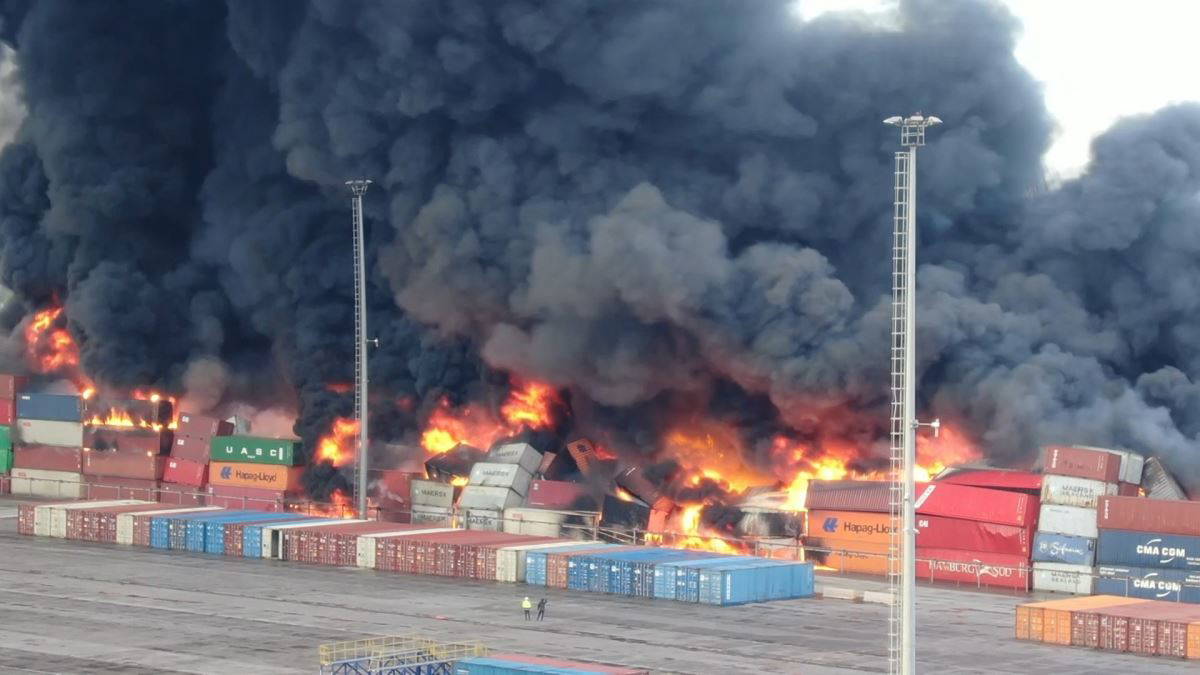 Merkez üssü Kahramanmaraş olan depremler sonrası konteyner devrilmesinden kaynaklı yangın çıktı.