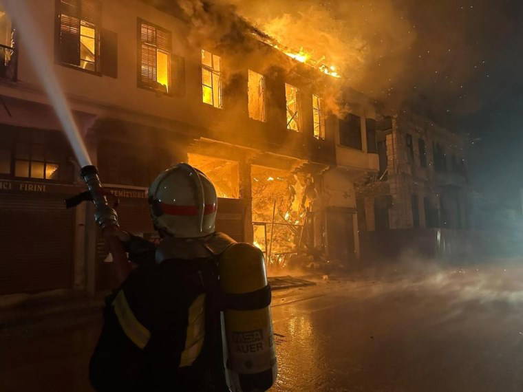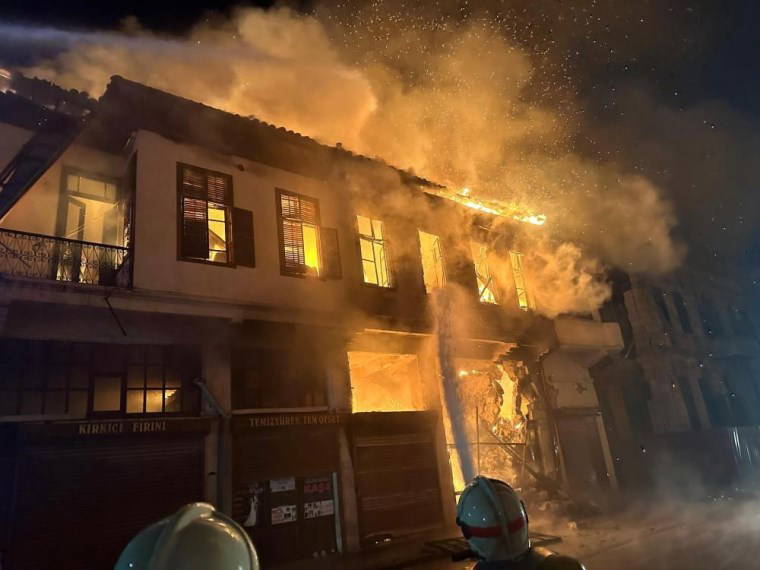 Depremde hasar alan ve kullanılmaz halde bulunan binada çıkan yangını gören yurttaşlar durumu 112 Acil Çağrı Merkezine bildirdi. İhbar üzerine bölgeye itfaiye ekipleri sevk edildi.