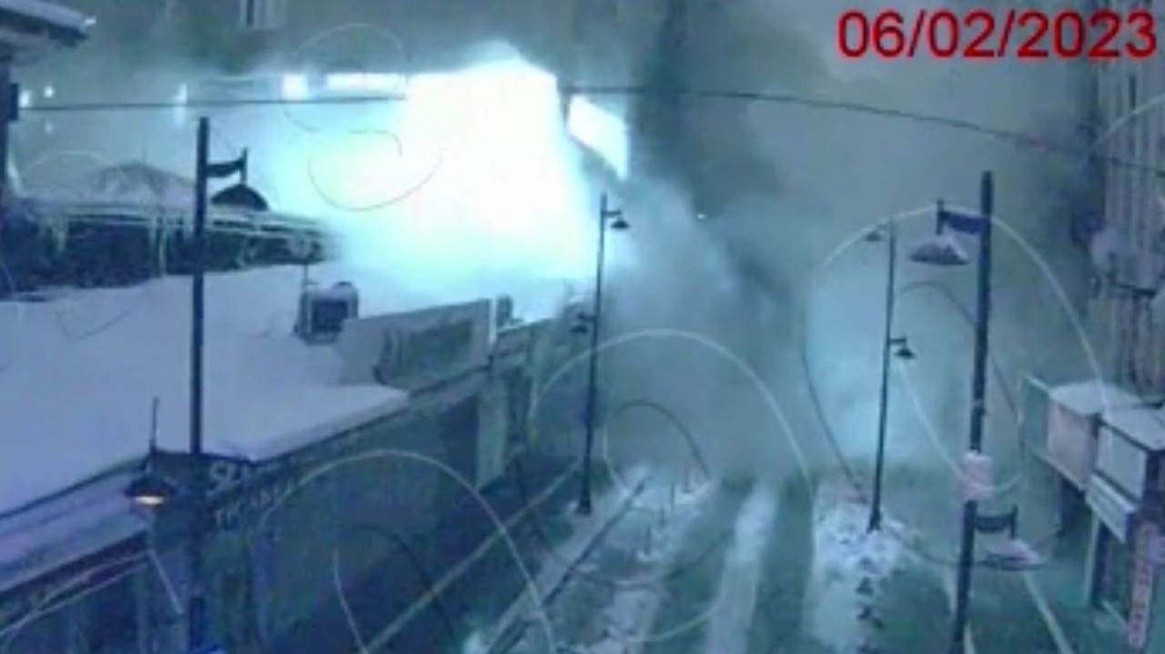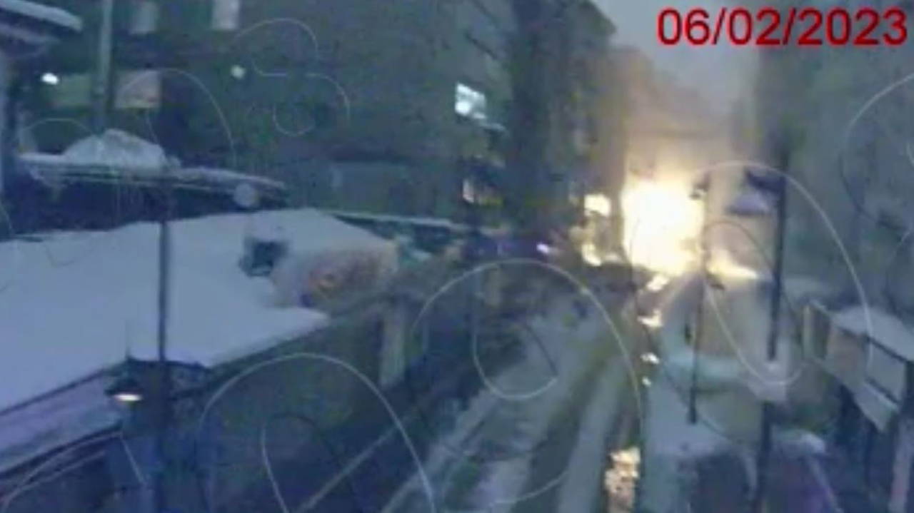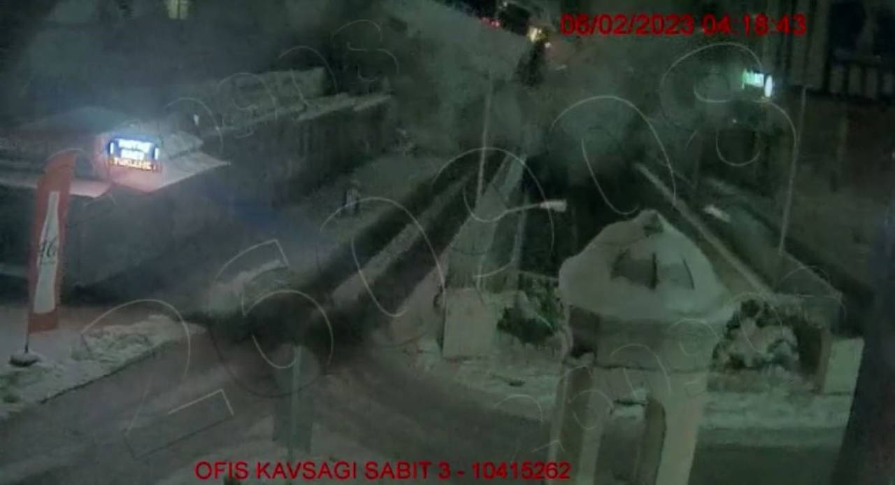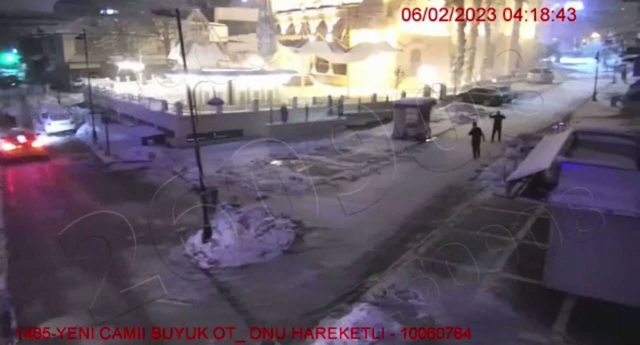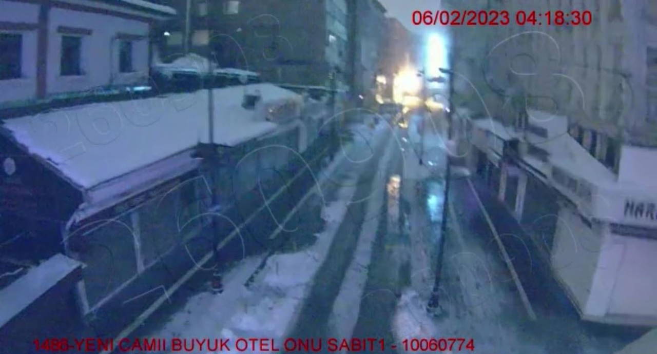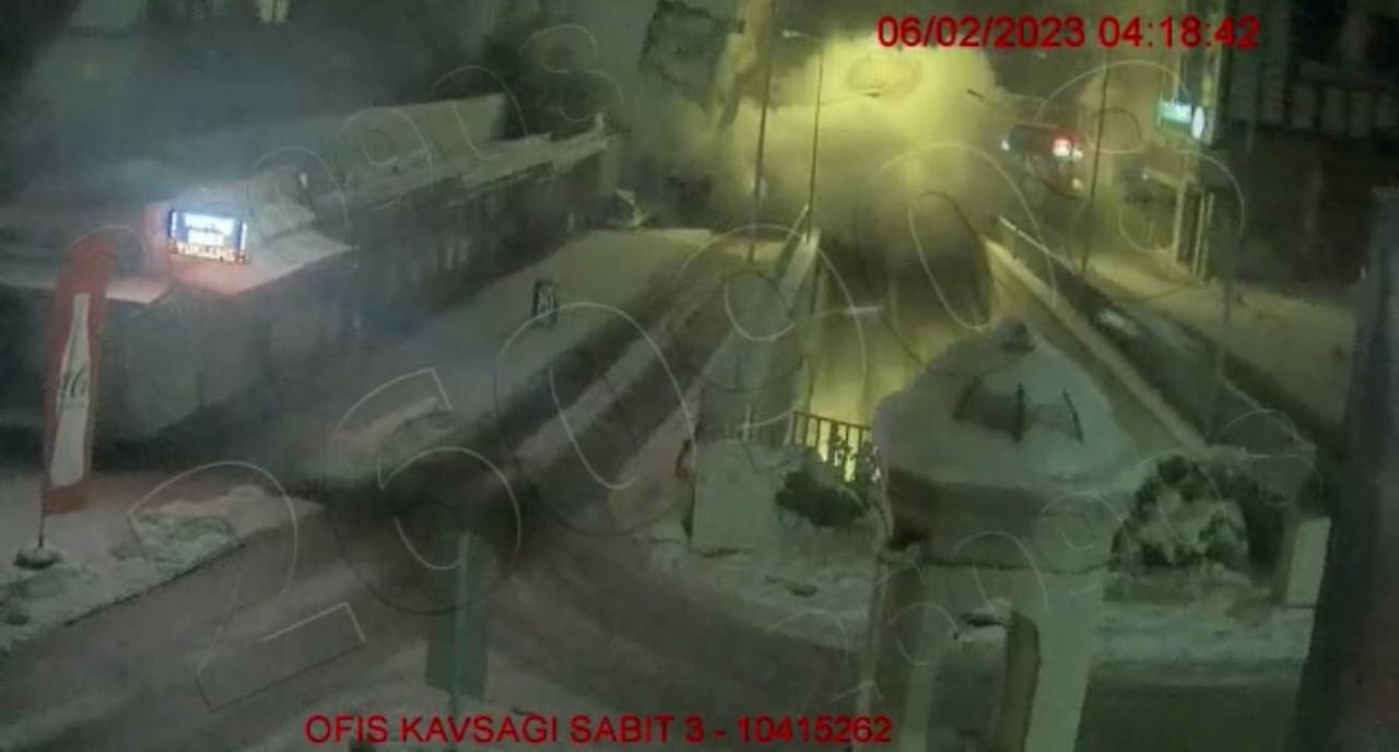 Kentin üç farklı noktasındaki güvenlik kameralarına yansıyan görüntülerde şiddetli sarsıntı sonrası kabloların kıvılcım çıkartması, park halindeki araçların sallanması ve binaların ardı sıra yıkıldığı anlar, saniye saniye güvenlik kamerasına yansıdı.