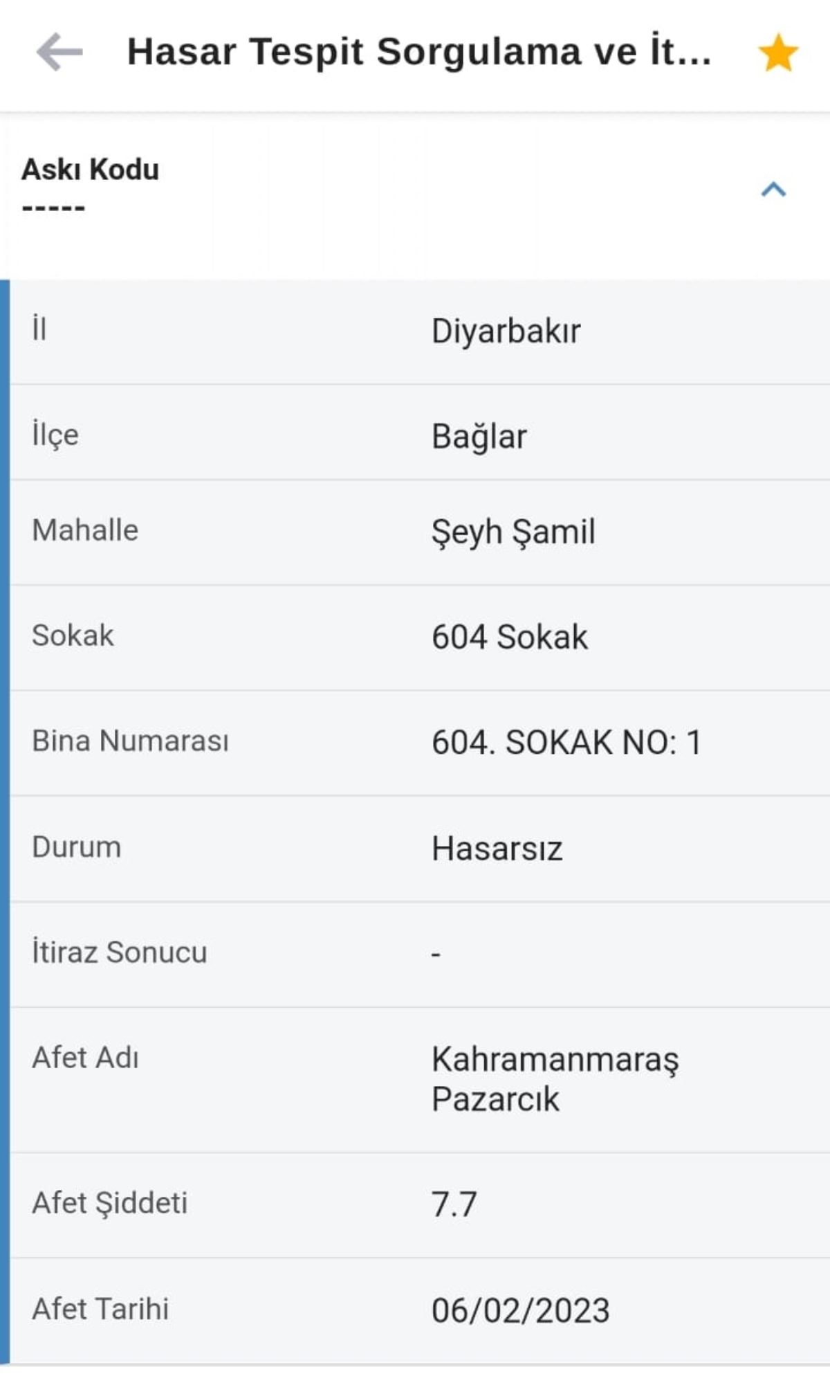 Diyarbakır ve birçok ilde depremlerin ardından binalarda hasar tespit çalışmaları yapıldı. Diyarbakır'ın Bağlar ilçesindeki depremden zarar gören bir eve verilen tespit tutanağı ise dehşete düşürdü.