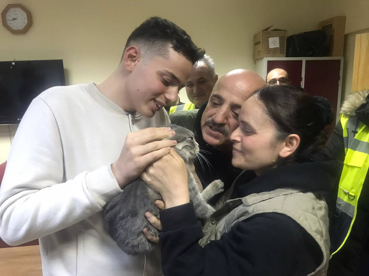 Veterinerdeki kontrollerinin ardından kedi Kutay İşlek'e 16'ıncı doğum gününde teslim edildi. Depremden yaklaşık 2 ay sonra doğum gününde kedisine kavuşan lise öğrencisi Kutay İşlek, büyük sevinç yaşadı.