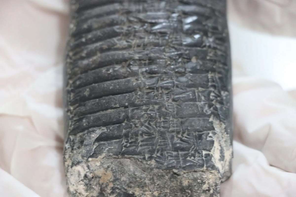 Çalışma kapsamında duvar molozlarını kaldıran ekip, kalıntıların arasında çivi yazılı kil tablet buldu.