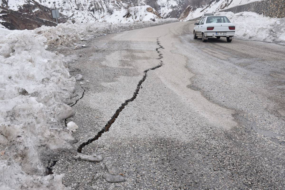 Depremlerden etkilenen Adıyaman-Çelikhan karayolunda oluşan derin yarıklar ve kaymalar, depremin büyüklüğünü gözler önüne serdi.