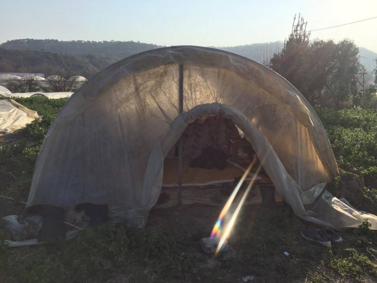 (Yurttaşlar seralarda kurdukları naylon çadırda barınmaya çalışıyor.)