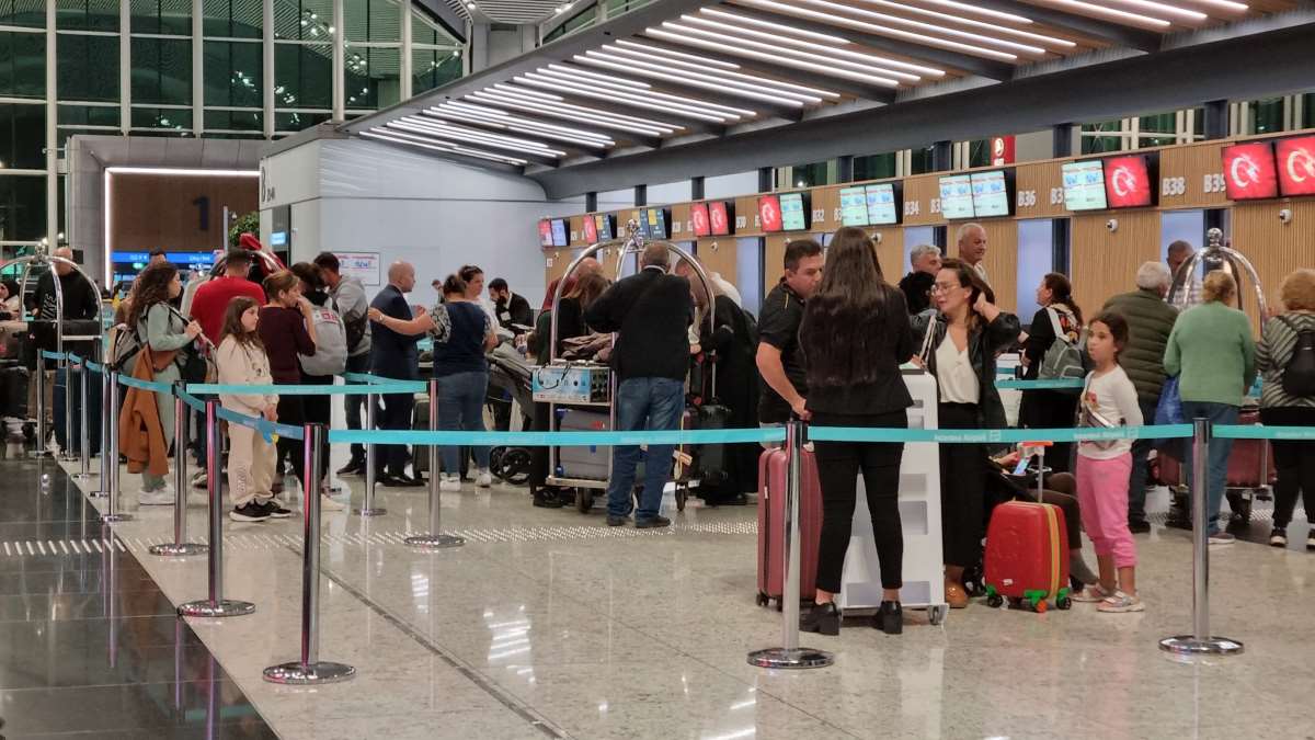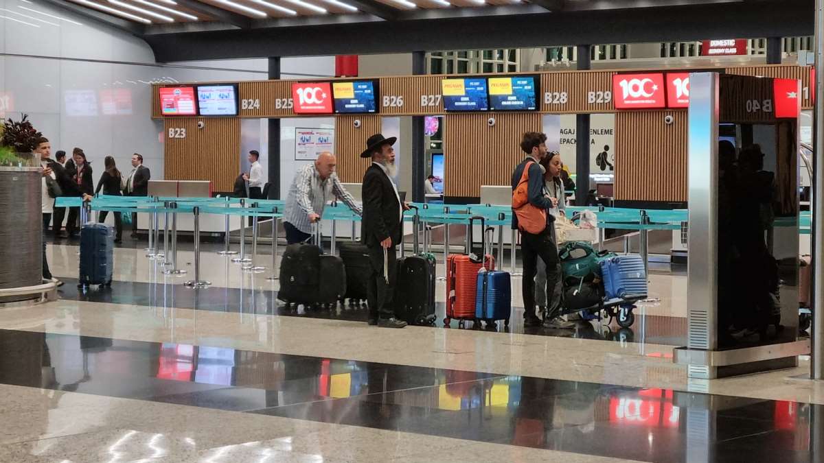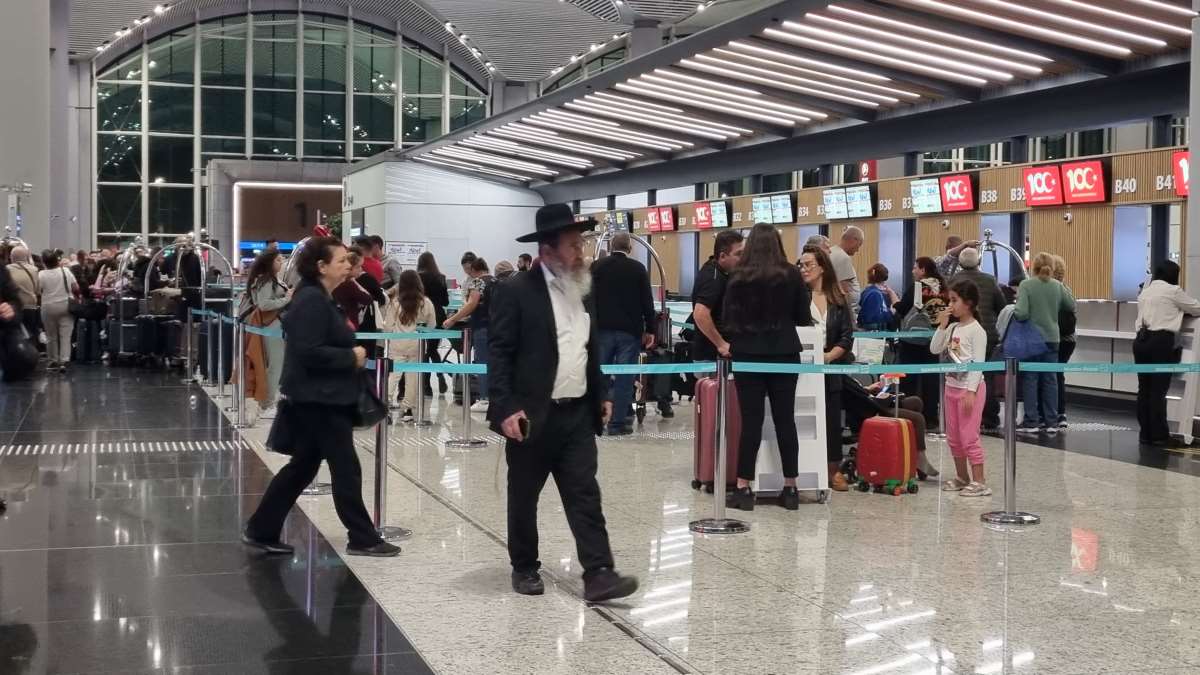 Türkiye'den ayrılmak isteyen İsrail vatandaşları, bilet ve bagaj işlemlerinin ardından pasaporttan geçerek uçağın kapısına gitti.