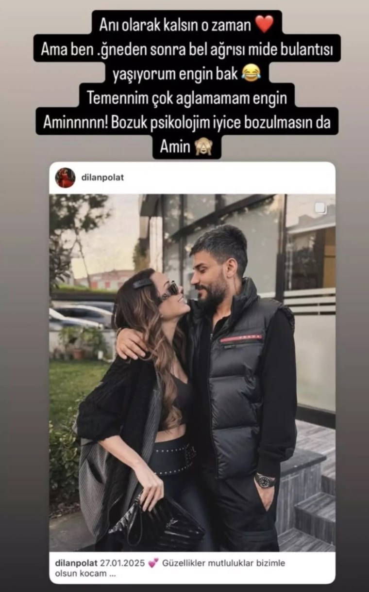 Her paylaşımında 3. çocuğu istediklerini söyleyen Dilan Polat, tüp bebek tedavisine başladıklarını duyurdu. Dilan Polat, sosyal medya hesabından eşi Engin Polat ile fotoğrafını paylaşarak "Güzellikler bizimle olsun kocam. Bugünün anısına kalsın" notunu düştü.
